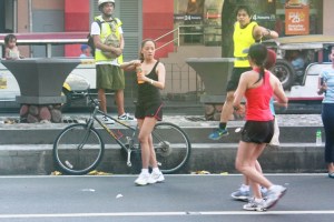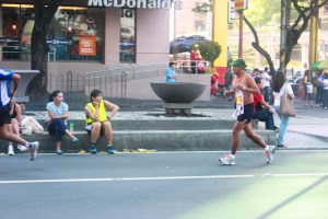 At the turnaround, the bystanders (don’t think they are marshalls) were taking our pics using their camera phone while cheering us. Thanks to the Manongs! Pa-mms ng picture namin ha…hehe (I forgot to give my number). It sure was a boost as we approach the 30th (defined as the wall!)