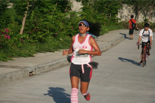 I saw Chito having his long run and told him about the situation. It was about 100 meters into the transition point, that was when I finally saw the crowd. I should start running, right! But I guess I was so down with the situation, I continued walking carrying my skirt and visor and signaling to Tere that she can run. Of course, she cannot. I have to pass her something. I reached the transition point, still feeling blank, frustrated, stupid (and looking stupid). Told the marshal about what happened, so they sent someone to that intersection.
