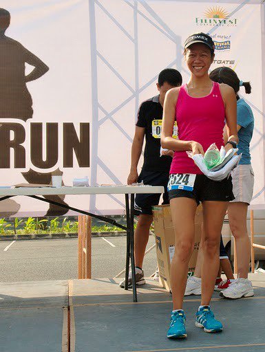 Back to my pacer role, Bessie is still doing well. It was the last 3kilometers, a little of rolling route then downhill to the finish. The marshal told me, before I made a left to finish (the last 1k) that I was the third girl. I could have sworn, there were still many girls ahead though. But,…hmmm why not, they could be right! I forgot about Bessie (I lost sight of him already after the uphills) and stayed behind Kaye. I ate her dust for that last 5k, finishing 40 seconds ahead. We crossed the mark in 52 minutes plus.