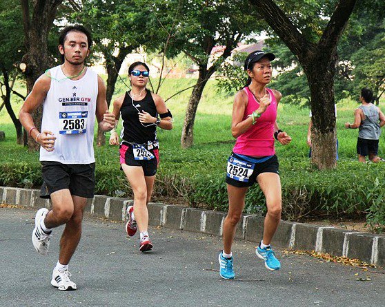 Kaye overtook me on the 5th kilometer and I trailed behind her. She definitely got the form and looks quite comfortable with an even pace. The Team Bald Runner-Elites should be proud, training paid off.