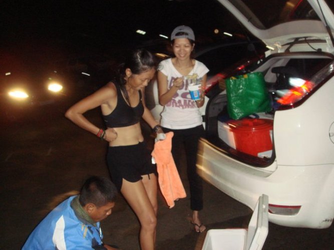 After the mass, I gave my crew another tour of my car. As if I didn’t label everything which is already in clear containers. We went thru my five-page instruction which contains 1)hydration, nutrition and gadget each kilometer, 2)food and hydration contents of the car and its location, 3)gears and clothes, 4) direction, 5)reminders and signs. Rhea has memorized them by heart. Mark is quite confident he can manage as he was my support in my first ultramarathon in Sierra Madre. All set! I took a shower and did the usual pre-race rituals. Everything was good except that I still have my monthly visitor. I tried to be positive about it just keeping in mind that it would help because they say girls have high tolerance for pain during these days. The problem is, one tends to overheat faster and there is a discomfort that I would have to manage. “Think positive, walang aayaw!” – This is what Matthew, son of my friend, Vida says to us every time and I just try to imagine him chanting in his cute voice. (Yes, his version, not Manny Pacquiao.)