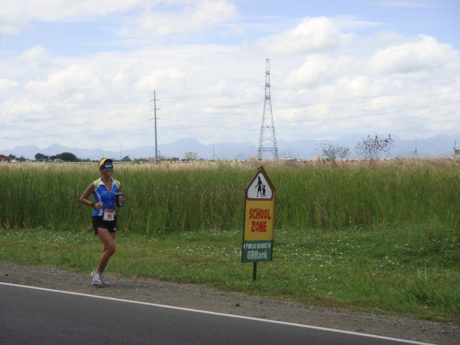 I saw the vehicle of the marshalls before the intersection in Lubao. Madame Rowena told me I was third female and gave me updates on my teammates. I didn’t realize the gap is that far with the three, I prayed that they meet the cutoff. I had about 20 kilometers left, by then, I am confident that I will make it. I just need to push for a better time. We are now in Guagua. My next goal is to reach the town plaza of Guagua where we are to make a left turn, then a right turn leading us back to the highway. After that, it will be a 10-kilometer of not-so-fun run.