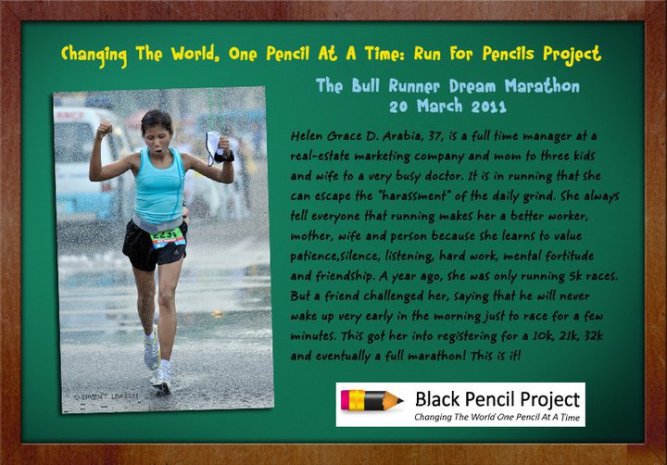 Thank you to all of you who made a pledge to the Black Pencil Project through my first marathon. You all made this worth the sacrifice and effort. (15 TBRDM marathoners joined this project and as of March 22, we were able to collect P80,152 with me raising the most amount of P25,800.)