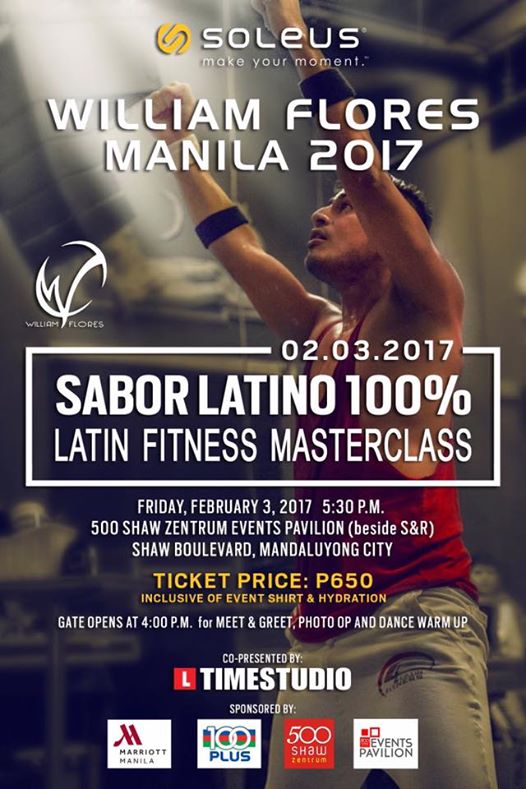 Join him for an intimate Latin Fitness MASTERCLASS session to experience a taste of SABOR LATINO 100%. February 03, Friday, 5:30pm at the Events Pavillion, Shaw 500 Zentrum along Shaw Boulevard (beside S&R).